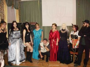 Opäť Lenona. Kostýmová súťaž zaujala rozmanitosťou. Všetky masky boli prekrásne. Naša steampunk lady získava striebornú, síce nie medailu, ale tortu. Všetci si na nej pochutnávajú štýlom „barbar“ – bez príboru, holými rukami.